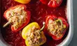 Deux plats principaux - Yemista : Tomates et poivrons farcis avec du riz ou Spanakopita (tarte aux épinards) - Moussaka grecque ou Pastitsio ou Lampe avec pommes de terre ou Giouvetsi